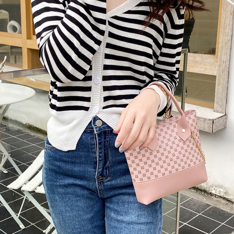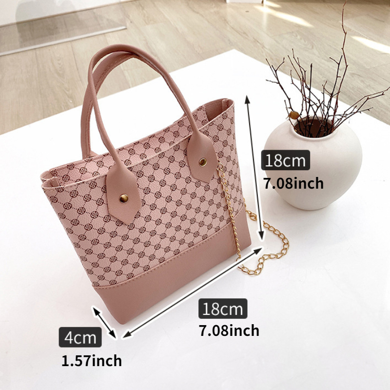 Rhombus & Print Retro Women's Bag, Fashion HandBag With Chain Strap, Zipper Decor Crossbody Bag