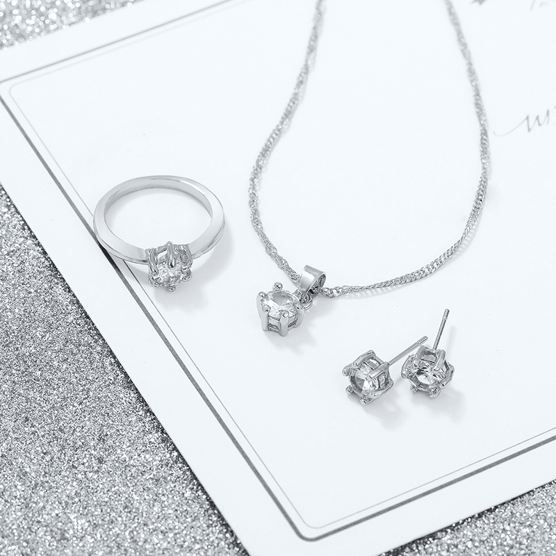 Zircon Stud Earrings Necklace Ring Three Piece Set